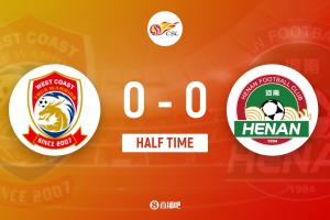 伤停补时1分钟,上半场比赛结束,青岛西海岸0-0河南。